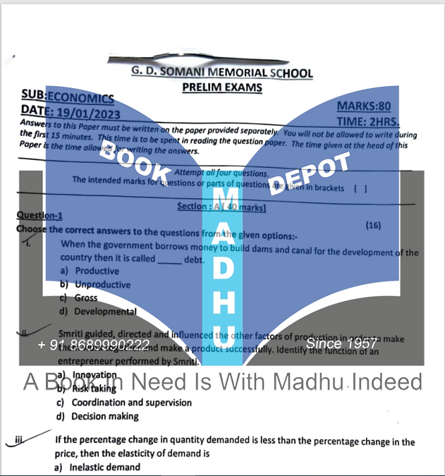 GD Somani Memorial School - Preliminary Exam Paper 10th - 2023