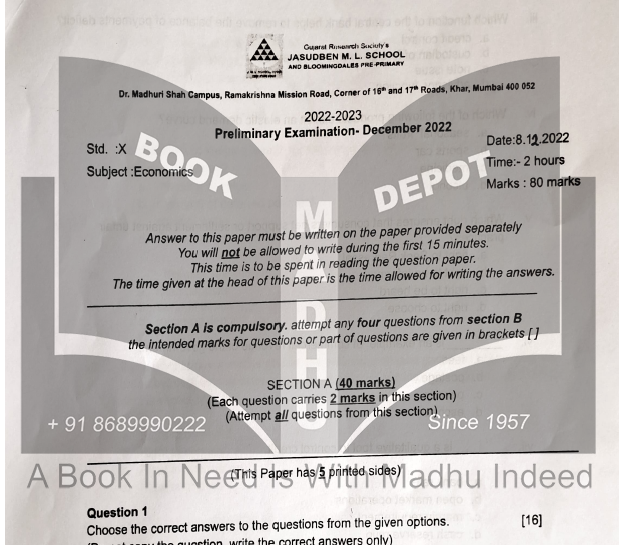 Preliminary Exam Paper of 10th Subject : Econimics Year : 2022 - 23 Mark 80