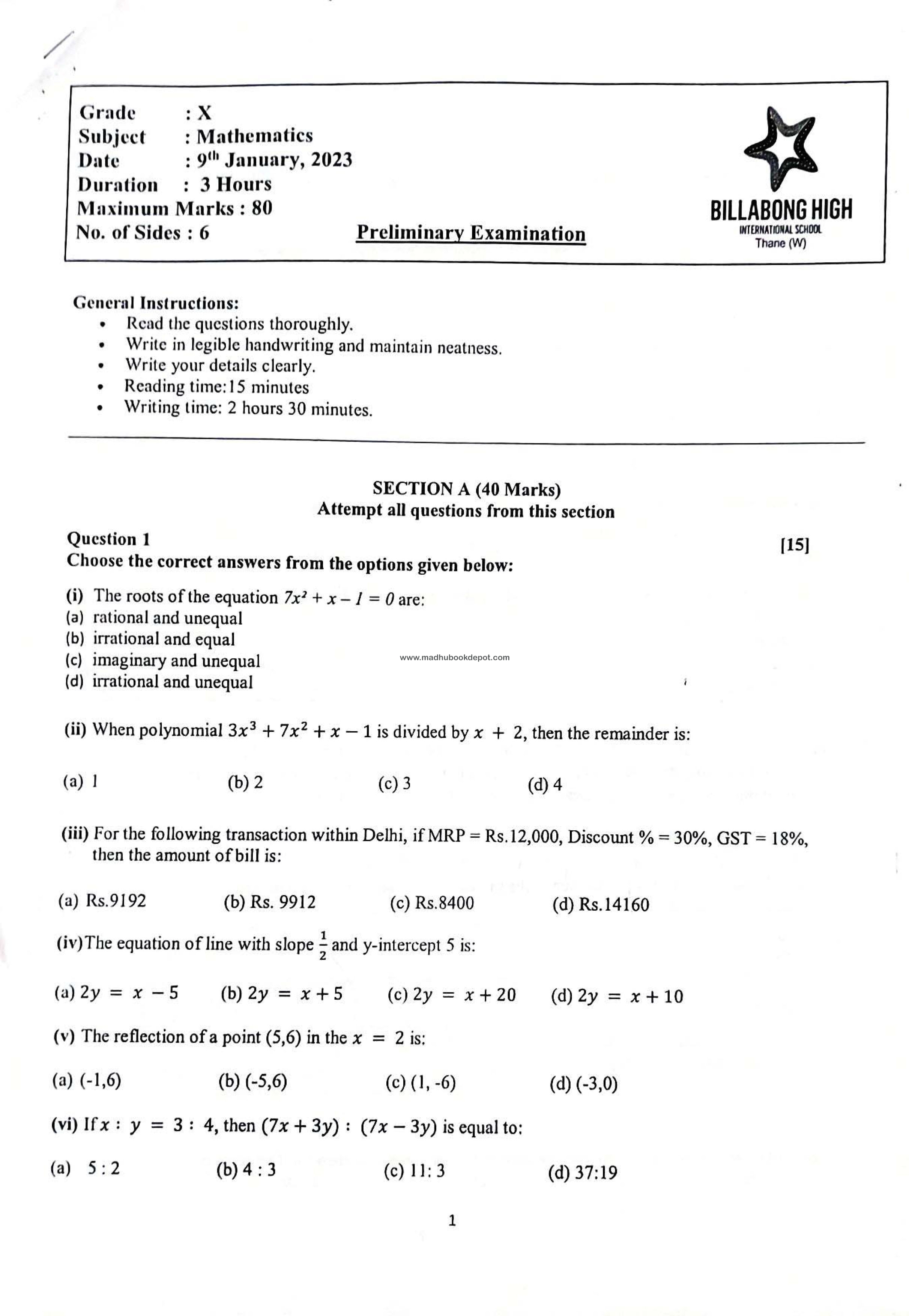 BILLABONG HIGH INTERNATIONAL SCHOOL View all papers