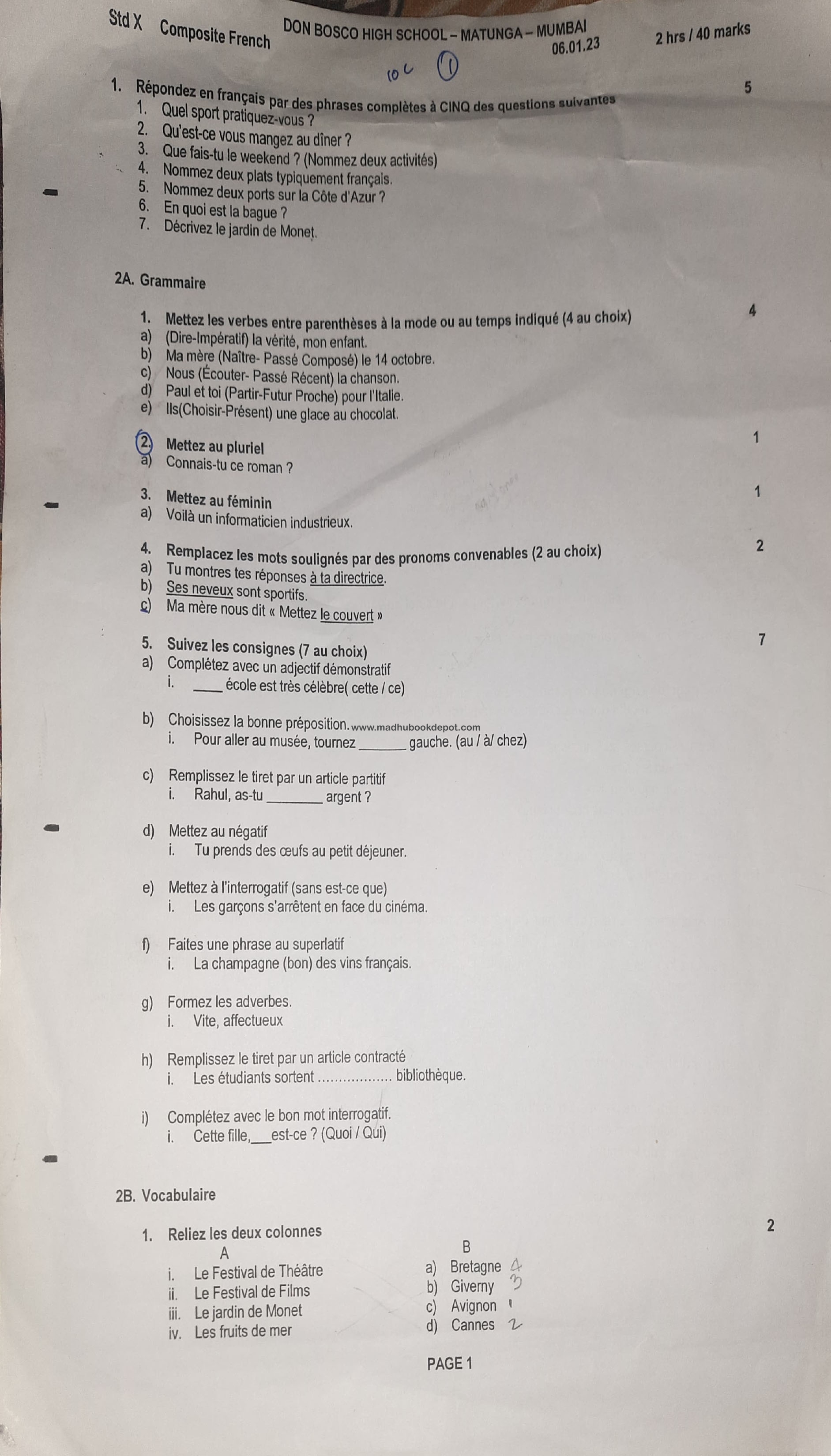 Composite French - DON BOSCO HIGH SCHOOL View all papers