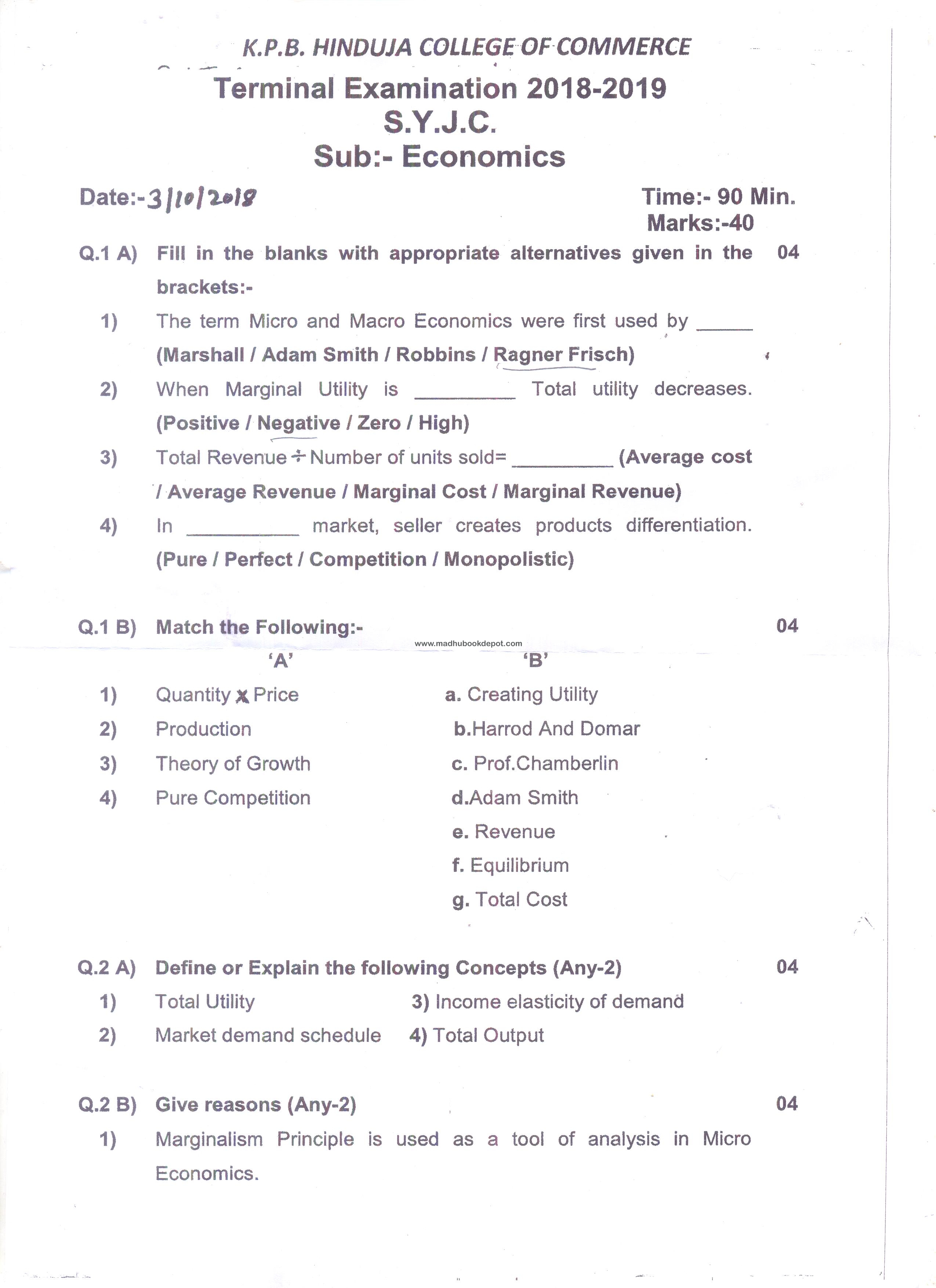 HINDUJA COLLEGE PRILIMS EXAM PAPERS 2018-19 View all papers