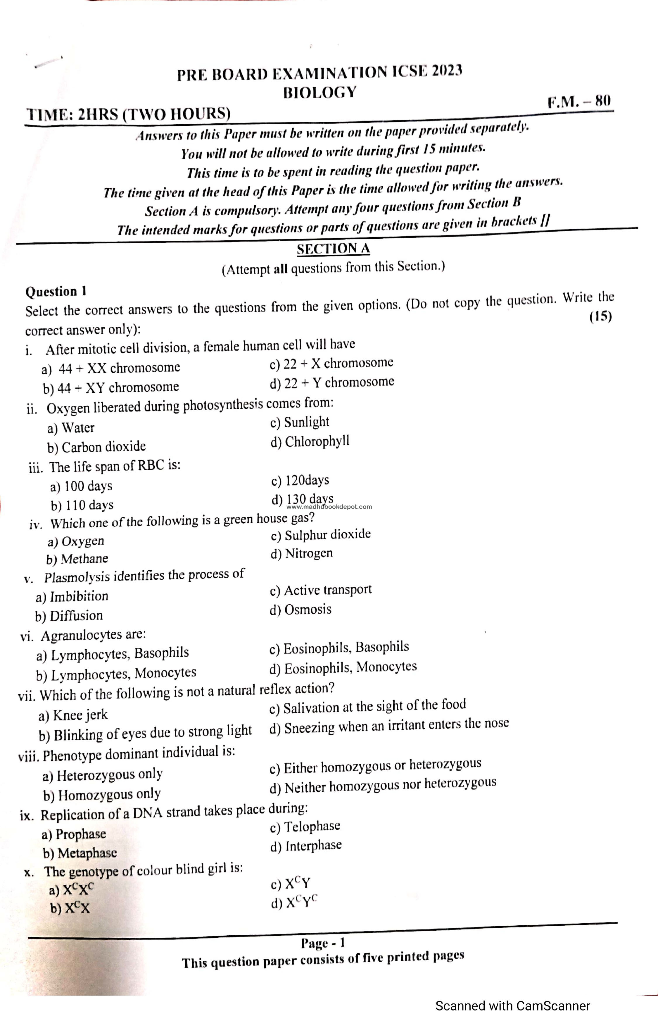 BIOLOGY PRE BOARD PAPER  View all papers