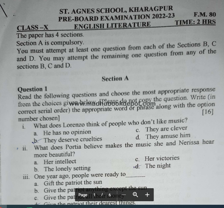 ST. AGNES SCHOOL ENG LIT 22-23 View all papers