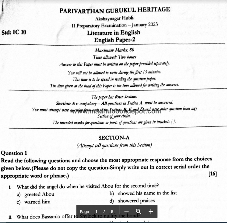 PARIVARTHAN GURUKUL HARITAGE ENG LIT 22-23 View all papers