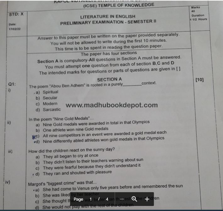 KAPOL VIDYANIDHI INTERNATINAL SCHOOL ENG LIT 22-23 View all papers