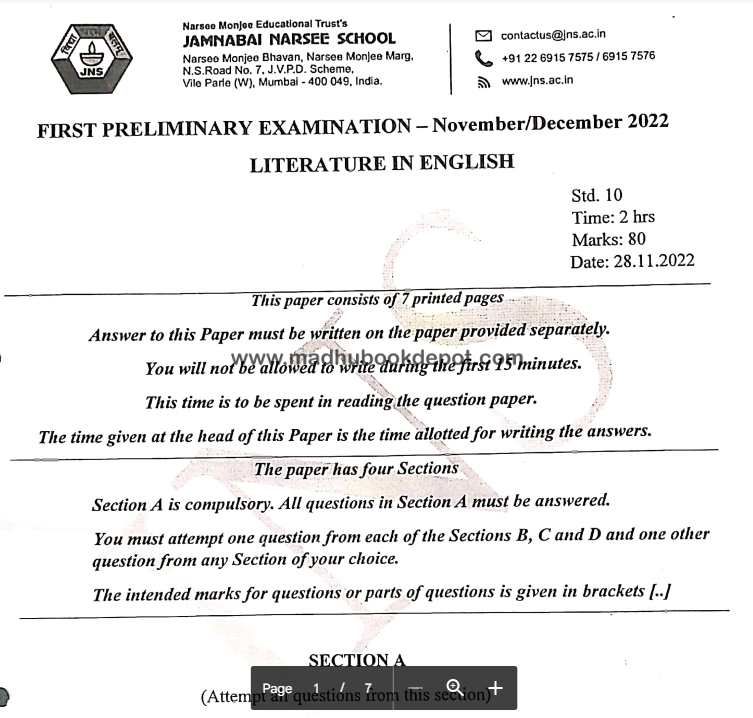JAMNABAI NARSEE SCHOOL ENG LIT 22-23 View all papers