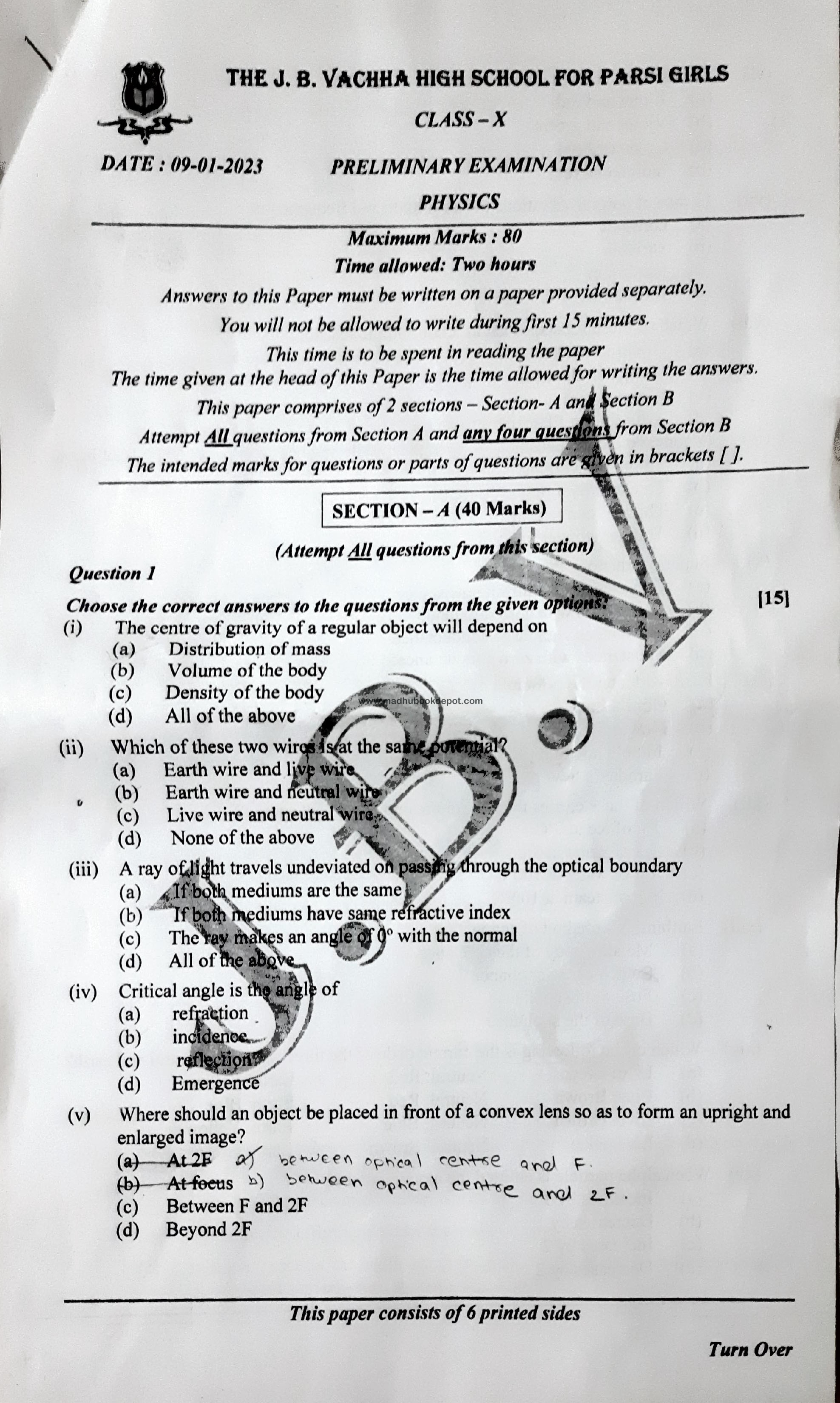 THE J.B. VACHHA HIGH SCHOOL FOR PARSI GIRLS View all papers