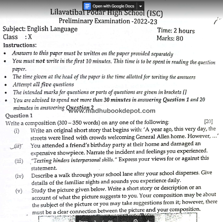LILAVATIBAI PODAR HIGH SCHOOL PRE PAPER View all papers