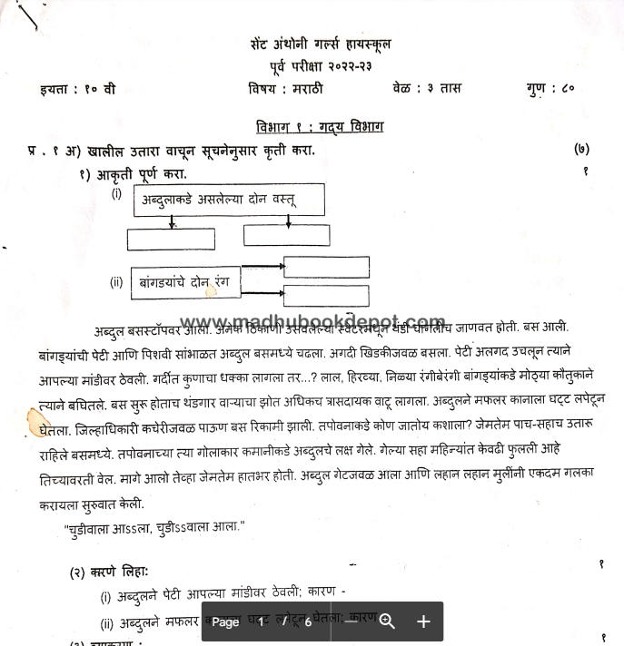 ST.ANTHONY GIRLS' HIGH SCHOOL (MARATHI) View all papers