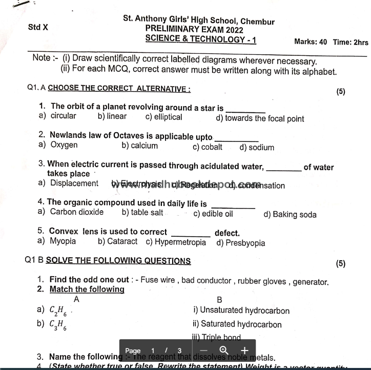 ST.ANTHONY GIRLS' HIGH SCHOOL (SCIENCE & TECHNOLOGY) View all papers
