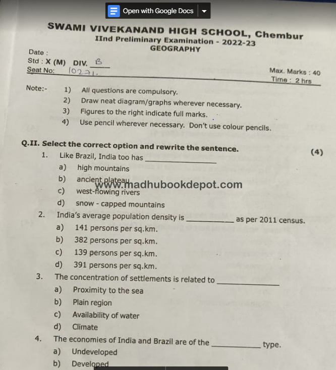 SWAMI VIVEKANAND HIGH SCHOOL (GEOGRAPHY) View all papers