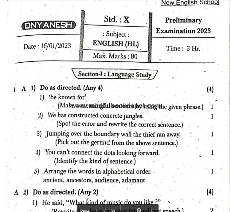 DNYANESH NEW ENGLISH SCHOOL (ENG) View all papers