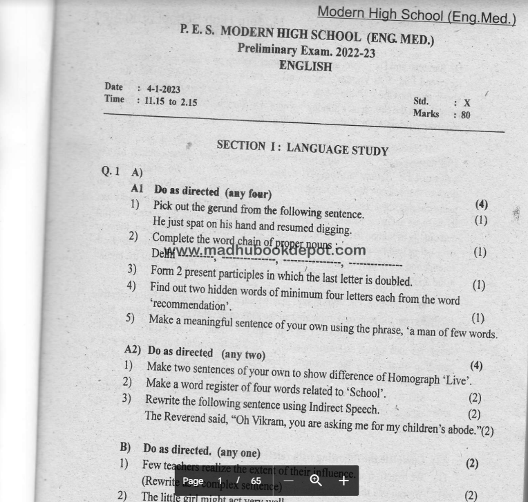 P.E.S. MODERN HIGH SCHOOL (ENG) View all papers