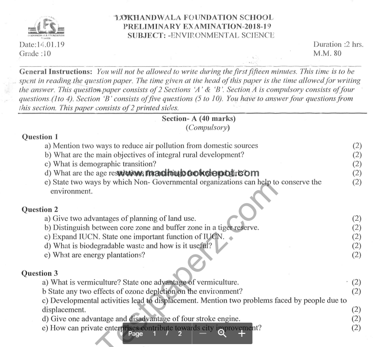 Lokhandwala Foundation School (ENVIRONMENTAL SCIENCE )  View all papers