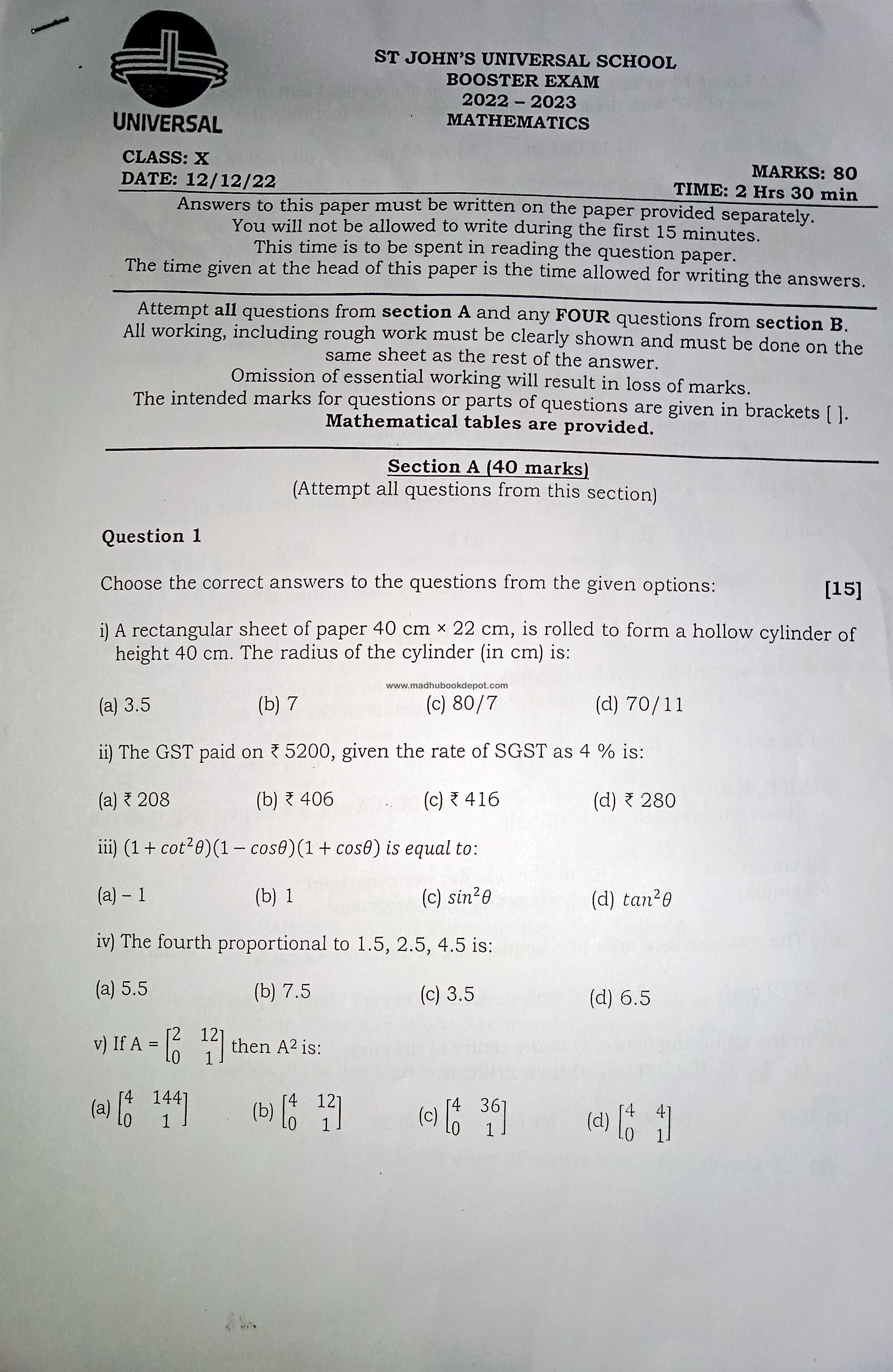 ST JOHN'S UNIVERSAL SCHOOL  View all papers