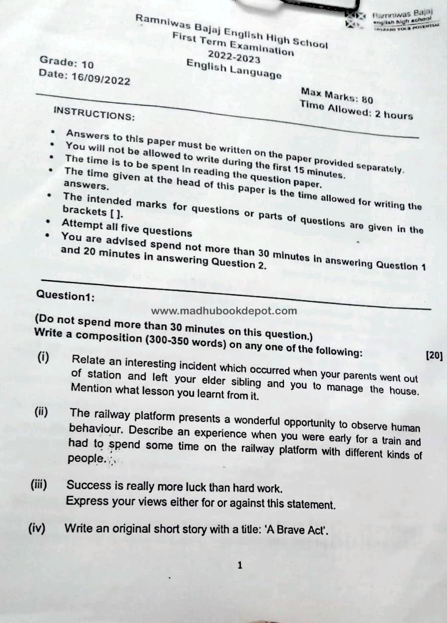 Ramniwas Bajaj English High School View all papers