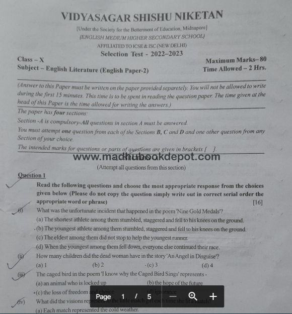 VIDYASAGAR SHISHU NIKETAN ENG LIT 22-23 View all papers