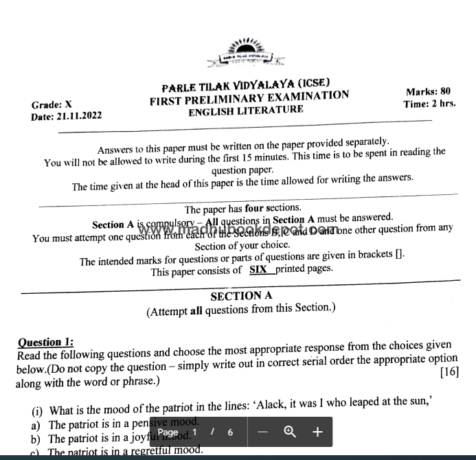 PARLR TILAK VIDYALAYA ENG LIT 22-23 View all papers