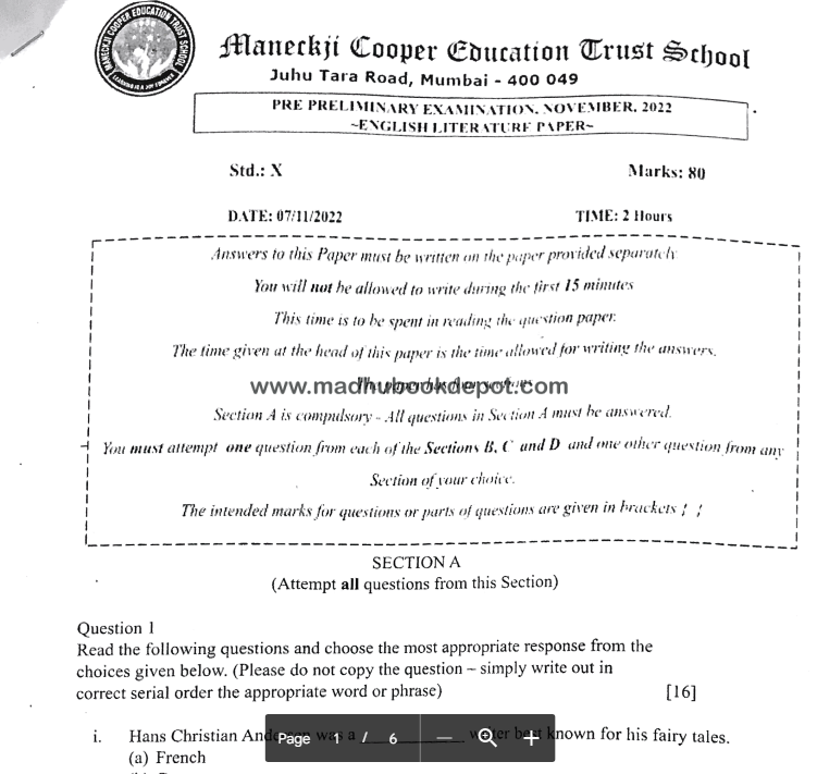 Maneckji Cooper Education Trust School ENG LIT 22-23 View all papers