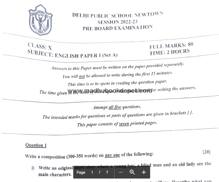 DELHI PUBLIC SCHOOL NEWTOWN ENG 22-23 View all papers