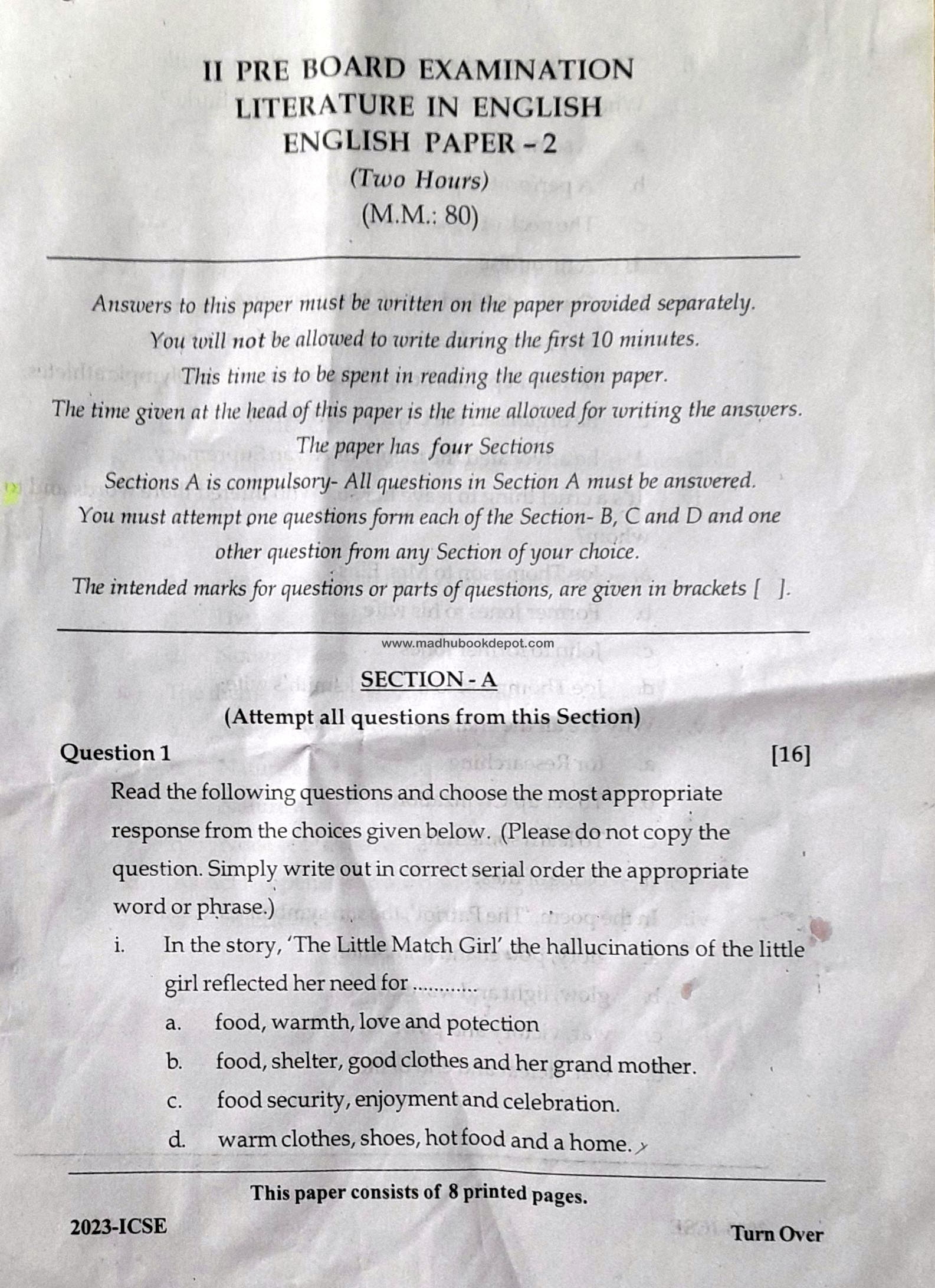 Pre Board Examination Literature ENG Paper-2  View all papers