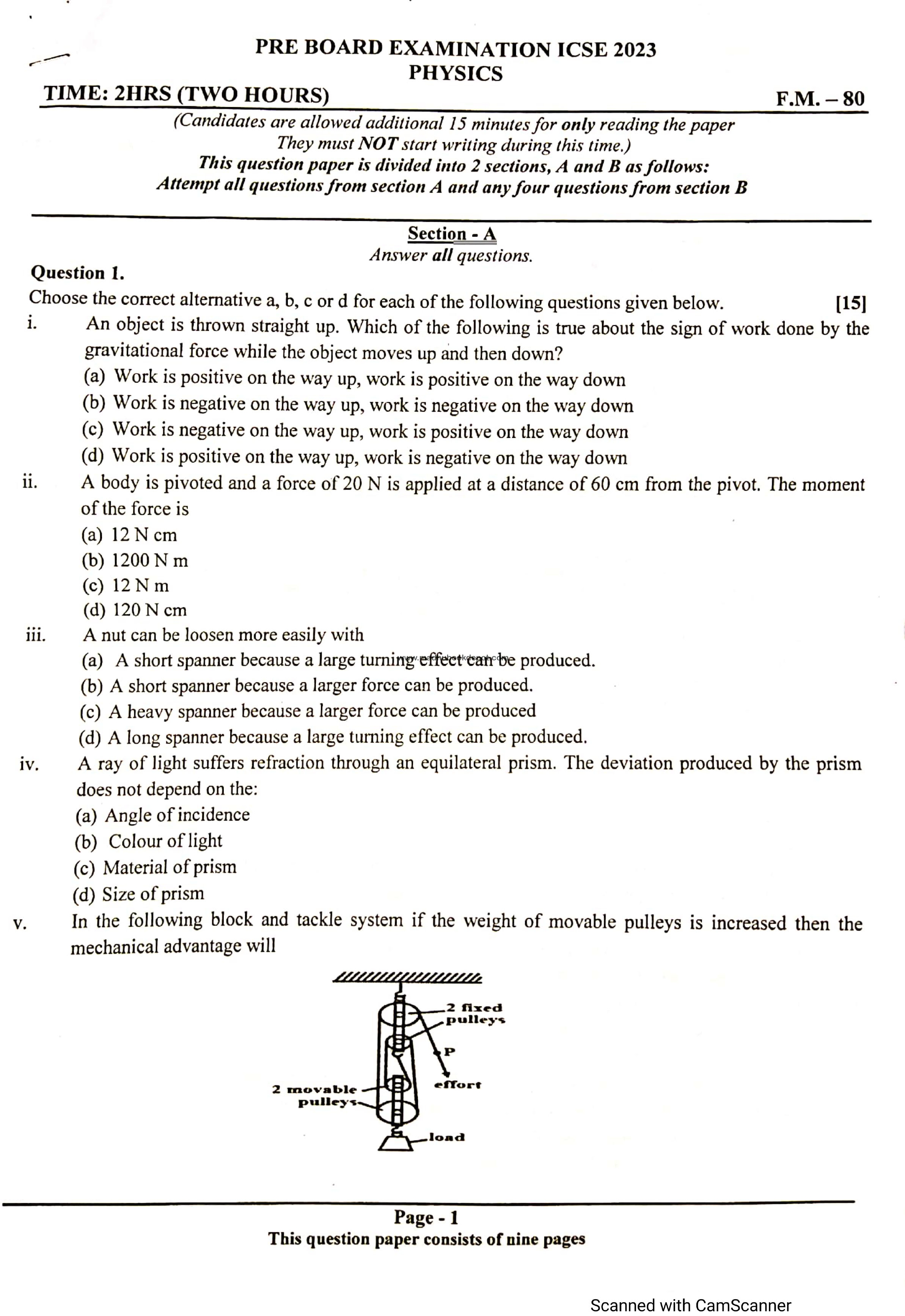 Pre Board Examination Physics  View all papers
