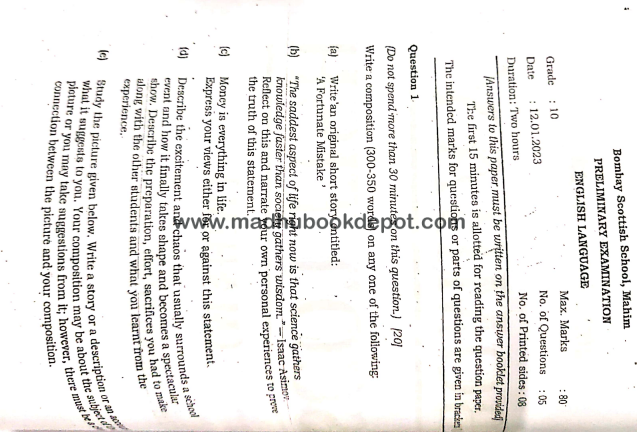 Bombay Scottish School PRE PAPERS View all papers