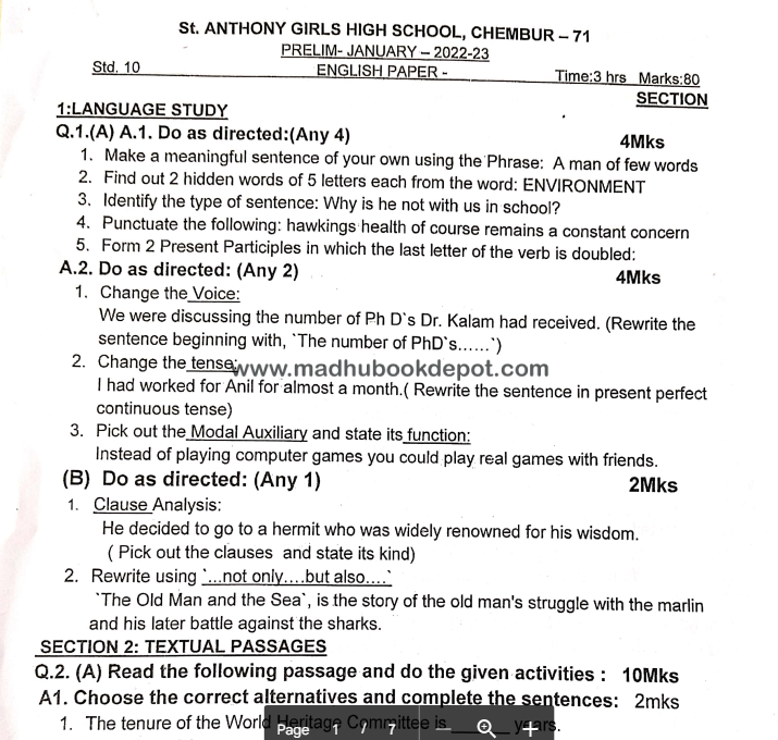 ST.ANTHONY GIRLS' HIGH SCHOOL (English) View all papers