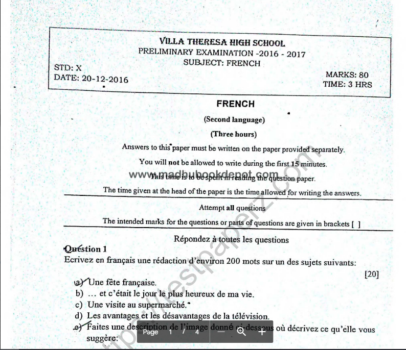 VILLA THERESA HIGH SCHOOL (FRENCH) View all papers